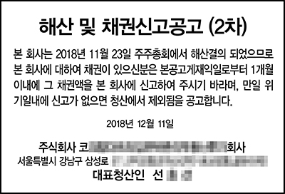 해산 및 채권신고 신문공고