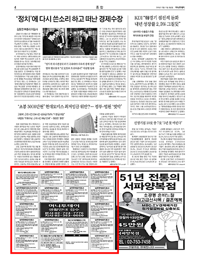 >> 신문은 게재된 다음날 도착 합니다